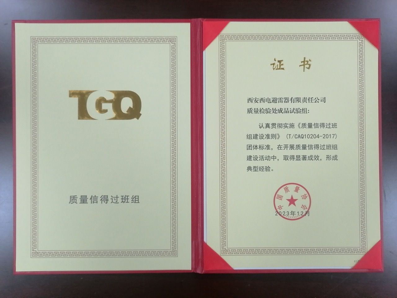 12月11日,西电避雷器成品试验班组继荣获中国西电集团股份有限公司质量信得过班组称号、西安市质量信得过班组一等奖、陕西省质量信得过班组一等奖之后,再获新荣,取得了中国质量协会(国优)质量信得过班组荣誉称号。
